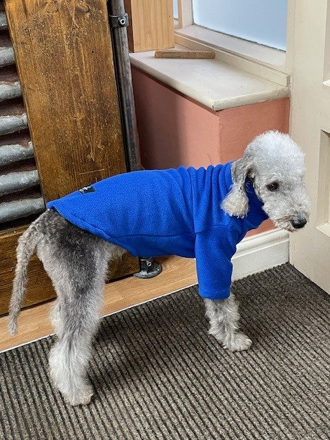 We love a fleece on our Hugo, pictures just here. We walk him on a harness, trying to find a coat for an awkward shaped dog with a harness hole which does not leak was becoming impossible. These fleeces are water resistant, warm, comfortable, breathable, wash well and dry quickly. Harnesses go over the top like a glove so Hugo stays safe, dry, warm, mud and mess free and limits the drying when we get home. We love them and know you will to.